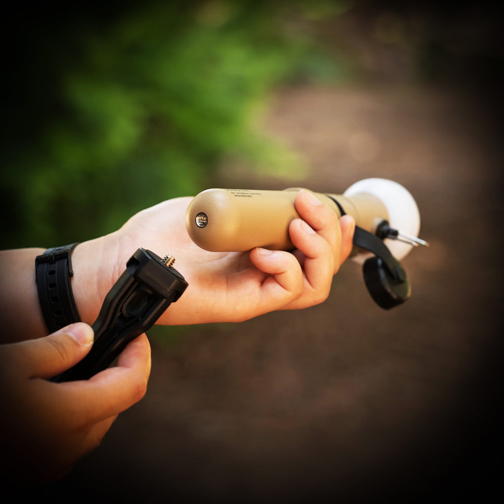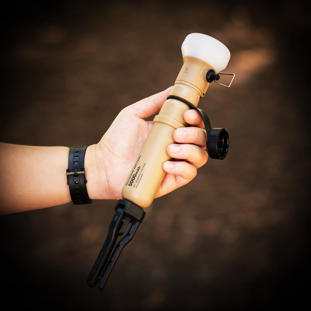 Set it up, hang it, or stand it tall, NESTOUT LAMP-1 adapts to any environment. The included mini tripod connects to your NESTOUT battery to transform the light into a freestanding flameless LED lantern for your campsite, picnic table, or hiking basecamp. Use it as a handheld light when you’re on the move or mount it for stable area lighting when you settle in for the night.