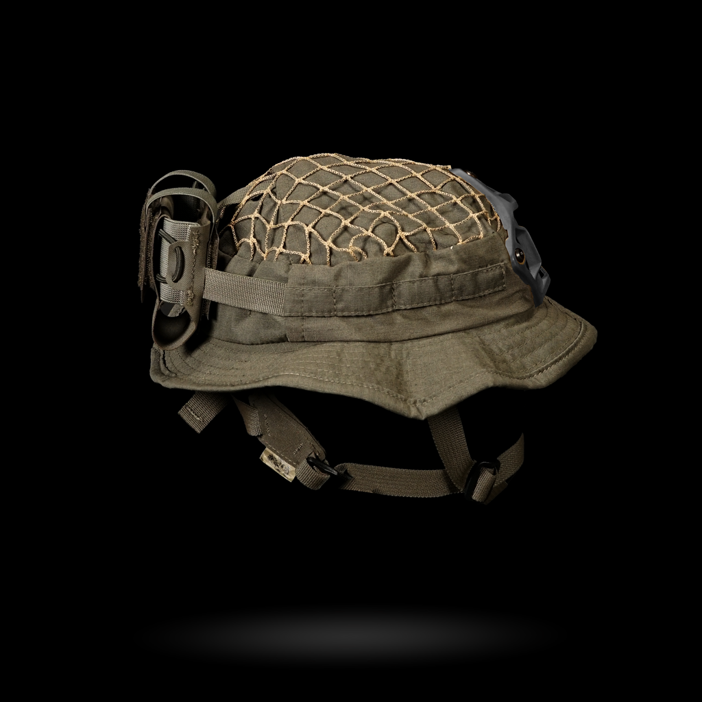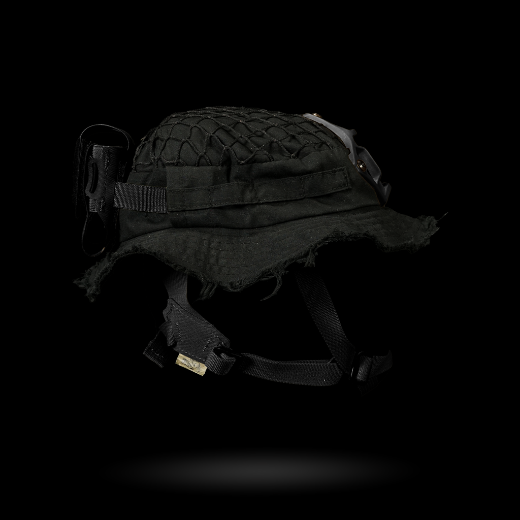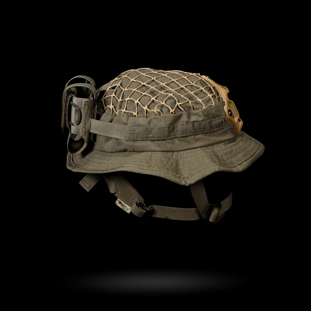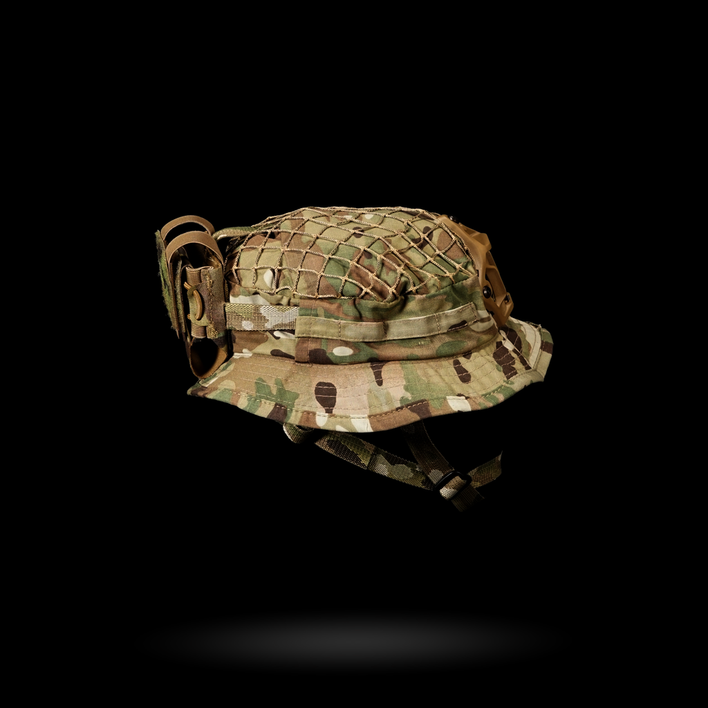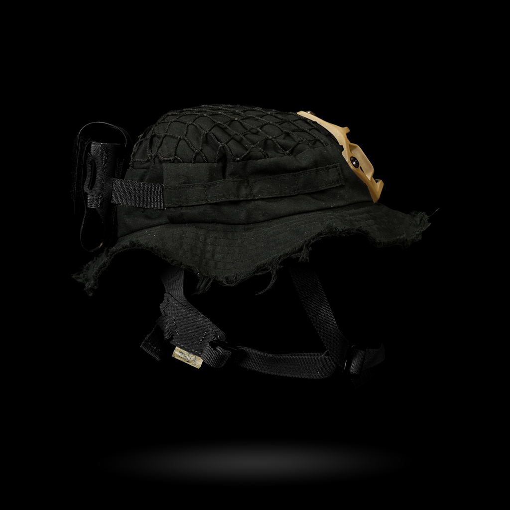 1x Chapeau Boonie "Bravo Six" : Cette housse de harnais est conçue avec plusieurs passants pour une intégration sans faille avec notre harnais crânien NVG, ainsi que des œillets pour fixer solidement un support NVG. La coupe large garantit la compatibilité avec divers harnais de tête.