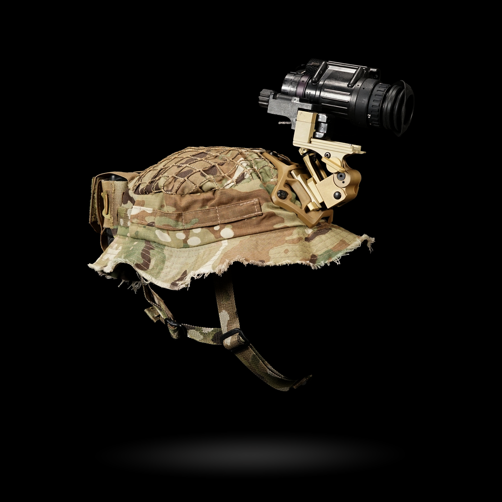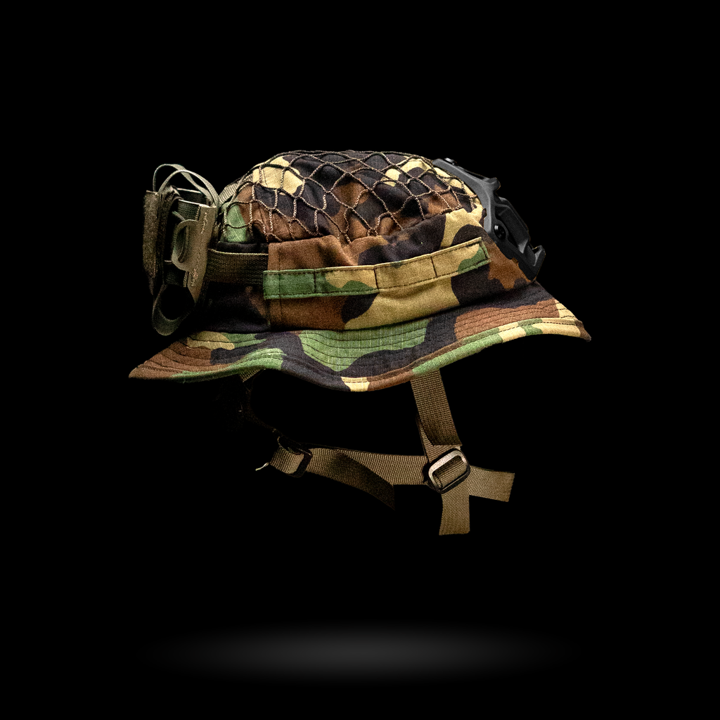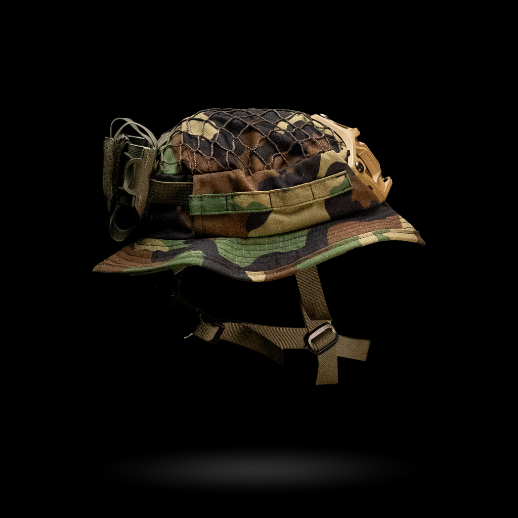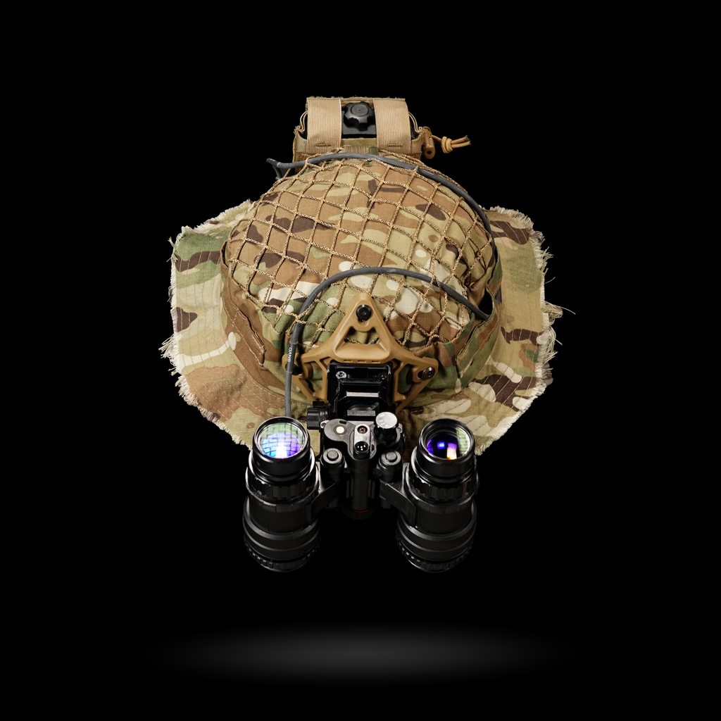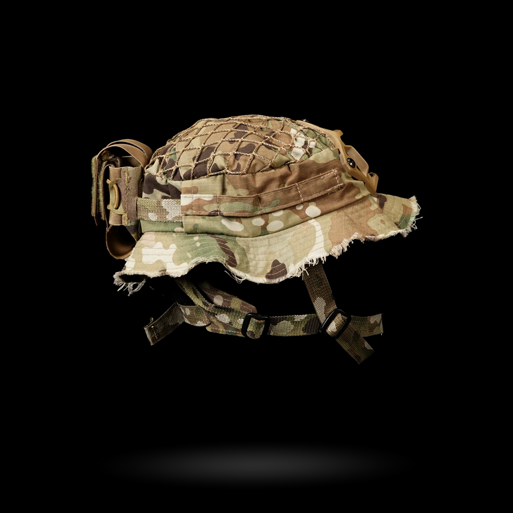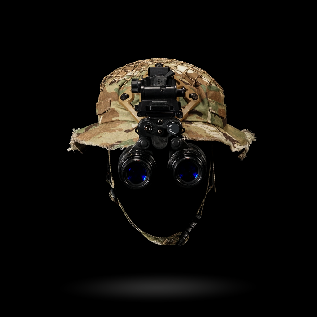 1x Chapeau Boonie "Bravo Six" : Cette housse de harnais est conçue avec plusieurs passants pour une intégration sans faille avec notre harnais crânien NVG, ainsi que des œillets pour fixer solidement un support NVG. La coupe large garantit la compatibilité avec divers harnais de tête.