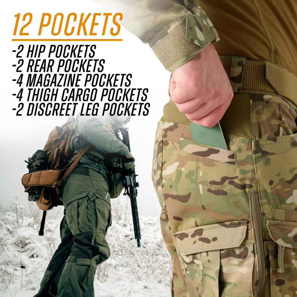 Both versions share the same combat-proven design, featuring a 12-pocket layout, reinforced construction, and an ergonomic cut inspired by airborne uniforms, optimized for long-duration wear and high-mobility tasks.